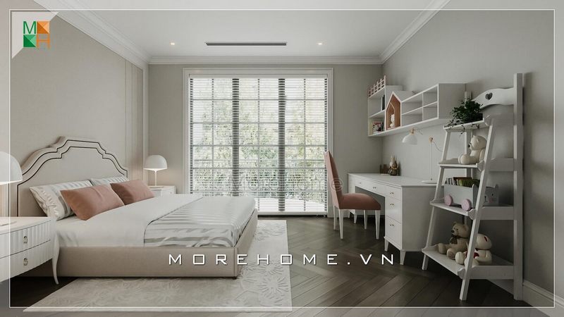 Tủ quần áo liền giường đẹp, hiện đại, sang trọng cho phòng ngủ của con.
