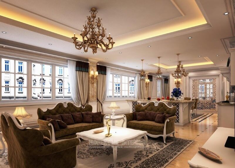 Thiết kế nội thất phòng khách chung cư, biệt thự tân cổ điển được kiến trúc sư đầu tư tỉ mỉ về cả đường nét và màu sắc, thể hiện được đúng cái "tôi" của gia chủ