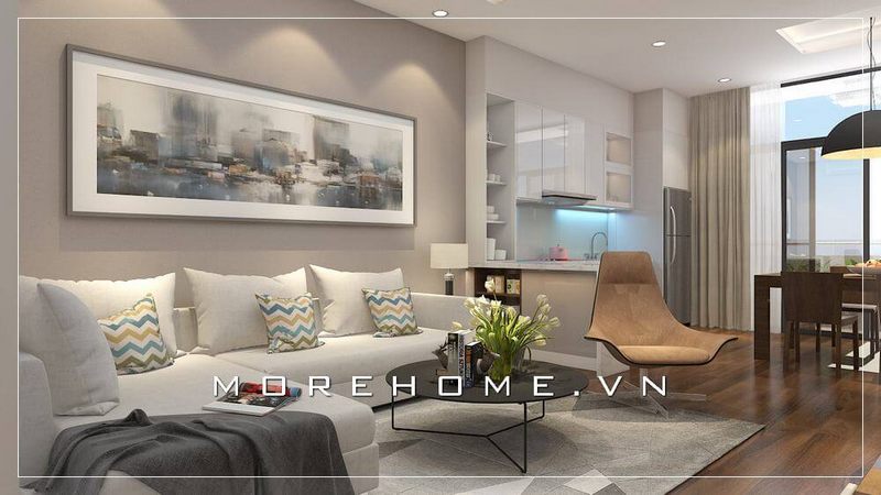 Thiết kế phòng khách chung cư hiện đại với cách bố trí sắp xếp nội thất hài hòa, hợp lý.