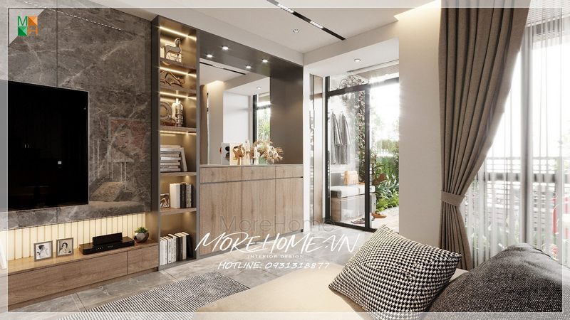 Ấn tượng với thiết kế phòng khách sáng tạo từ KTS Morehome khi đặt thêm bục ghế ngồi bên cửa sổ. Thiết kế đơn giản này là một cách để gia tăng thêm chỗ ngồi cho những không gian nhỏ. Đây có thể trở thành nơi để bé yêu vui chơi hay nơi để bạn ngồi thư giãn, ngắm cảnh hay đọc sách yên tĩnh