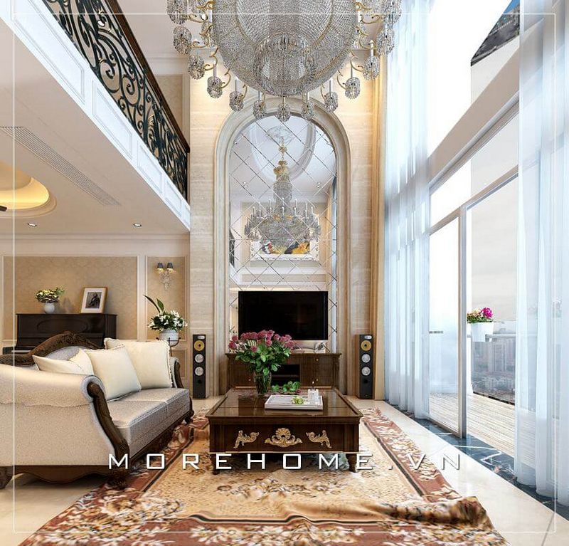 Thiết kế không gian phòng khách biệt thự sang trọng với nội thất tân cổ điển thể hiện cá tính và đẳng cấp của gia chủ
