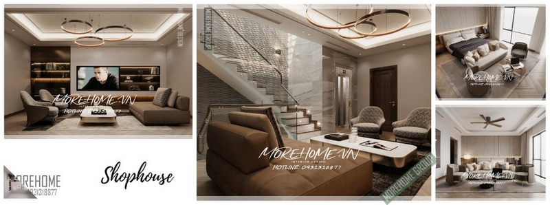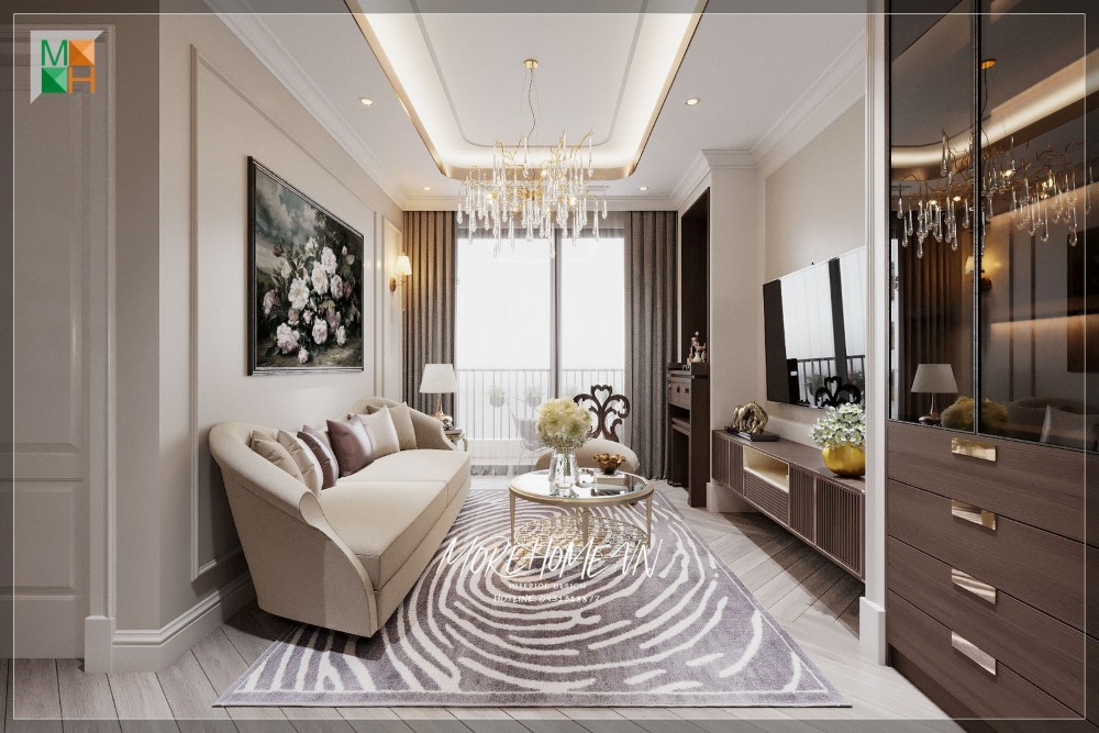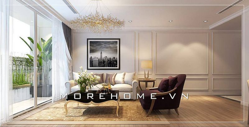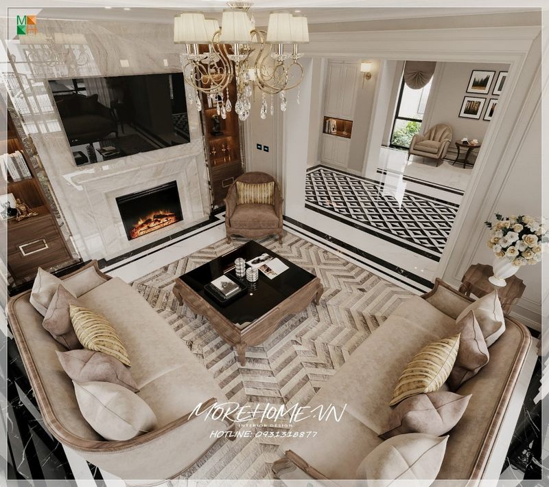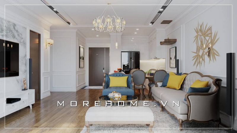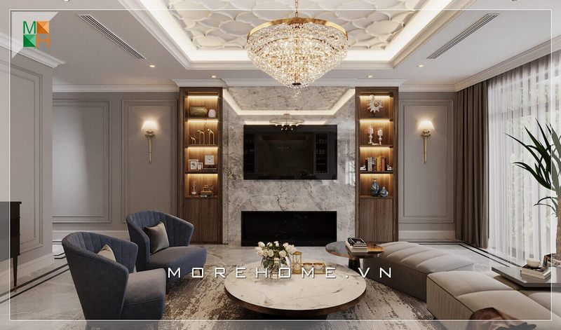 Phòng khách phong cách tân cổ điển cho chung cư, nhà phố, biệt thự do Morehome thực hiện