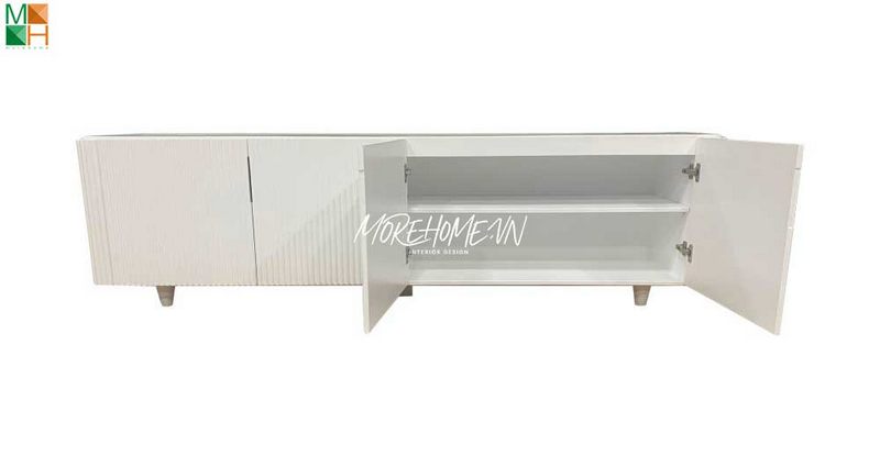 Mẫu kệ tivi phòng khách bằng gỗ công nghiệp sơn trắng phong cách đương đại sang trọng cho chung cư, nhà phố, biệt thự