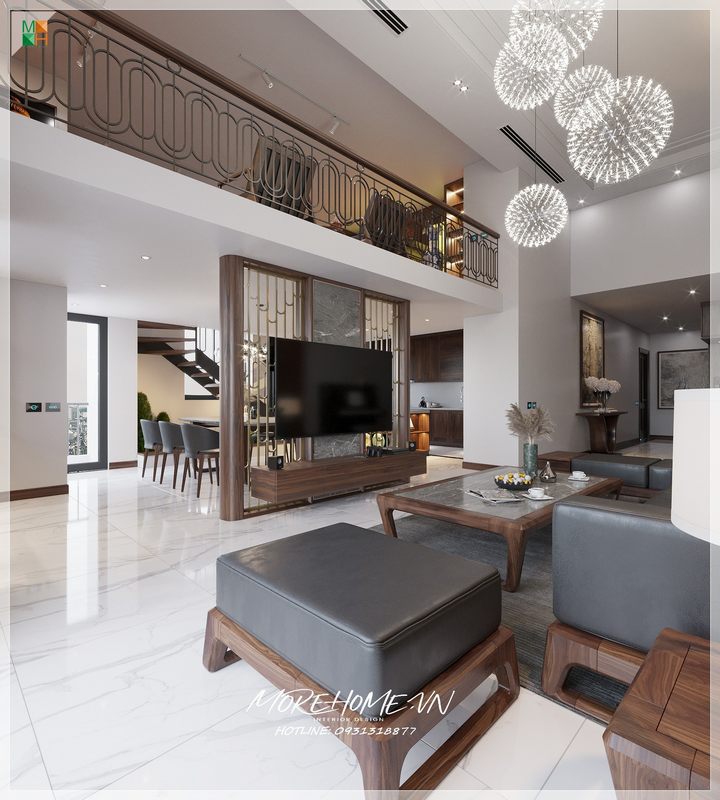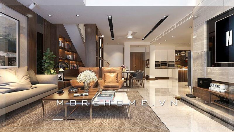 Trang trí nội thất phòng khách liền phòng ăn hiện đại, đẹp, sang trọng cho căn hộ thông tầng như chung cư duplex, penthouse.