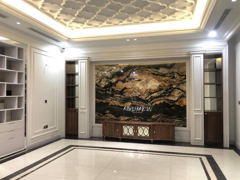 Thi công nội thất phòng khách ấn tượng với thiết kế tân cổ điển