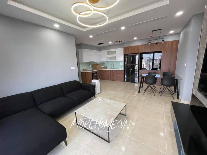 Trang trí nội thất phòng khách liền bếp ăn hiện đại đẹp, sang trọng cho căn hộ chung cư.