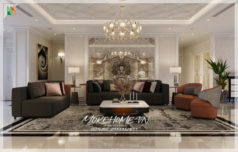 Thiết kế phòng khách sang trọng phong cách tân cổ điển cho biệt thự, duplex, nhà phố, chung cư
