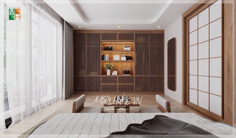 Cửa trượt phong cách nhật được tạo nên từ gỗ nguyên tấm đảm báo tránh sự cong vênh, giấy mờ tạo nên điểm nhấn riêng cho phong cách này.