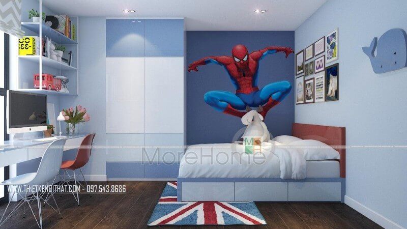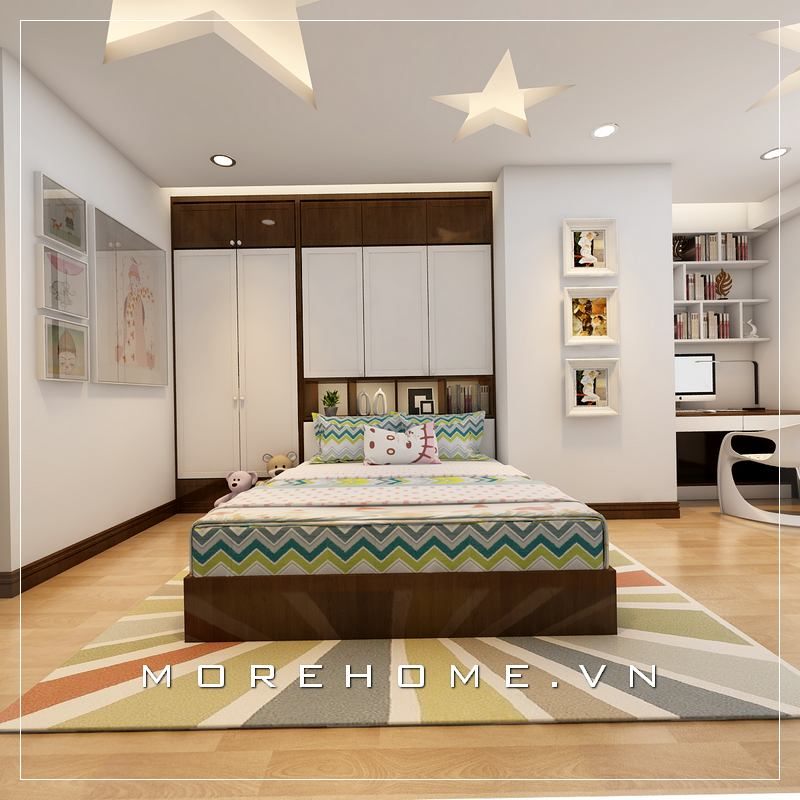 Mẫu giường ngủ công nghiệp gỗ hiện đại mang lại ấn tượng mạnh mẽ, giúp cho các bé có một không gian thoải mái nhất để học tập và giải trí.