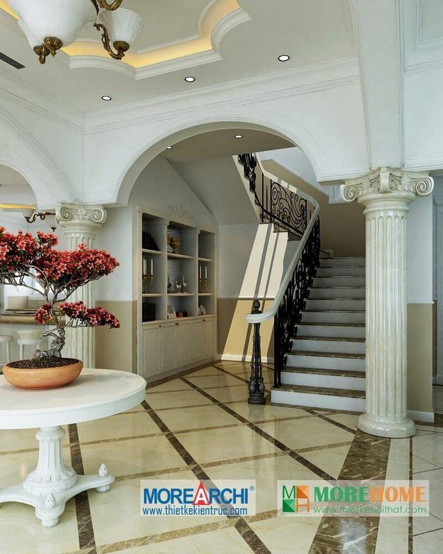 Những chi tiết như phào chỉ, hoa văn trang trí cầu kỳ kết hợp với màu sắc nhẹ nhàng, thanh lịch tạo nên không gian sống vừa ấm cúng vừa đẳng cấp. Đặc biệt, việc sử dụng vật liệu tự nhiên như gỗ và đá không chỉ mang lại sự bền vững mà còn tạo cảm giác gần gũi với thiên nhiên.