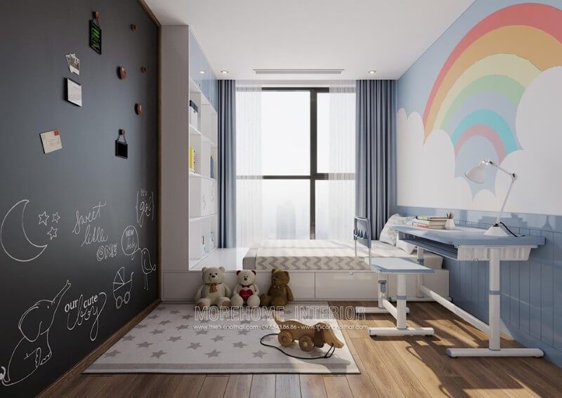 Hơn nữa, việc tích hợp các hoạt động giải trí như góc đọc sách, khu vực chơi game hay không gian sáng tạo nghệ thuật trong phòng ngủ sẽ giúp trẻ tận hưởng nhiều trải nghiệm phong phú hơn. Một không gian đa chức năng không chỉ phục vụ cho giấc ngủ mà còn là nơi trẻ có thể thư giãn, học hỏi và giao lưu với bạn bè. Nhờ đó, phòng ngủ trở thành một thế giới riêng, nơi mỗi đứa trẻ có thể khám phá và phát triển những sở thích cá nhân của mình một cách tự nhiên và hứng thú.
